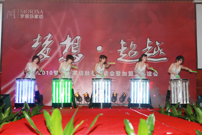 作为本次订货会的最大亮点——首届加盟商联谊晚会,在市场部和督导部的紧张筹备下,在28日晚闪亮登场。精彩纷呈的节目表演,以全新的角度,充满情感的演绎方式体现了梦丽莎人以创新引领未来,以蜕变迎接新生的豪情壮志。富有动感和节奏的电光鼓表演,为本次晚会拉开了序幕。造型相似的杰克逊模仿秀,到位的舞蹈模仿、与乐曲旋律恰到好处的肢体语言仿佛把人们带到了杰克逊的演出现场;厦门专卖店龚哲阳的独唱《小小的太阳》、文山店店长廖绍梅的《龙图腾》,甜美宏亮的歌声,加上南平店陈骋小朋友活泼的舞蹈表演,以及销售部的手语《和你一样》,无论是动感激情,还是活泼轻松,丰富多彩的节目,多样的文艺形式,均展现出梦丽莎人追寻梦想脚步的激情。