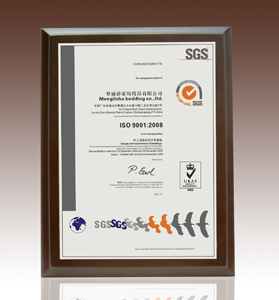 加强质量管理是企业可持续发展和提升品牌竞争力的有效方式。梦丽莎家纺自2006年,导入ISO9001质量管理体系以来,一直坚持“以质量求生存、以创新求发展”的质量理念,致力为消费者提供高质实惠的家纺产品,公司于日前第三次顺利通过国际SGS的监督审核,成功完成ISO9001-2000版向ISO9001-2008版本的转换升级。